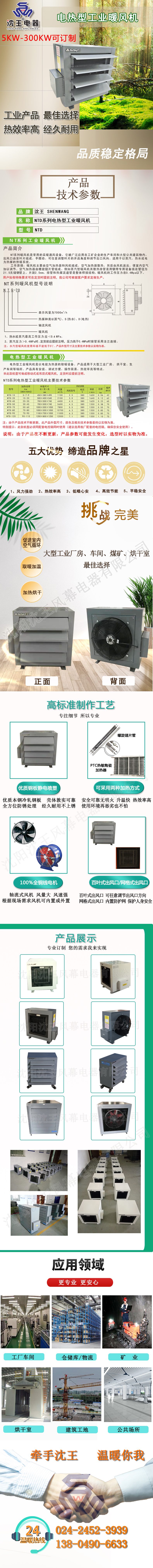 簡介:电热型工业暖风机是以电能为热源的取暖设备。产品适用于大型工业厂房、烘干室、生产车间等场所。产品具有安装、调试方便,操作简易,热效率高等特点。